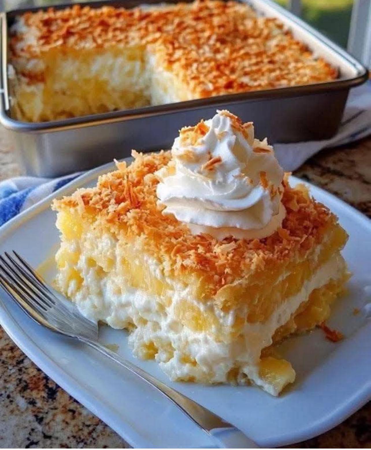 That looks like a Pineapple Coconut Cream Dessert (sometimes called Pineapple Delight or Pineapple Coconut Poke Cake). Here’s a simple recipe you can follow to make it at home: